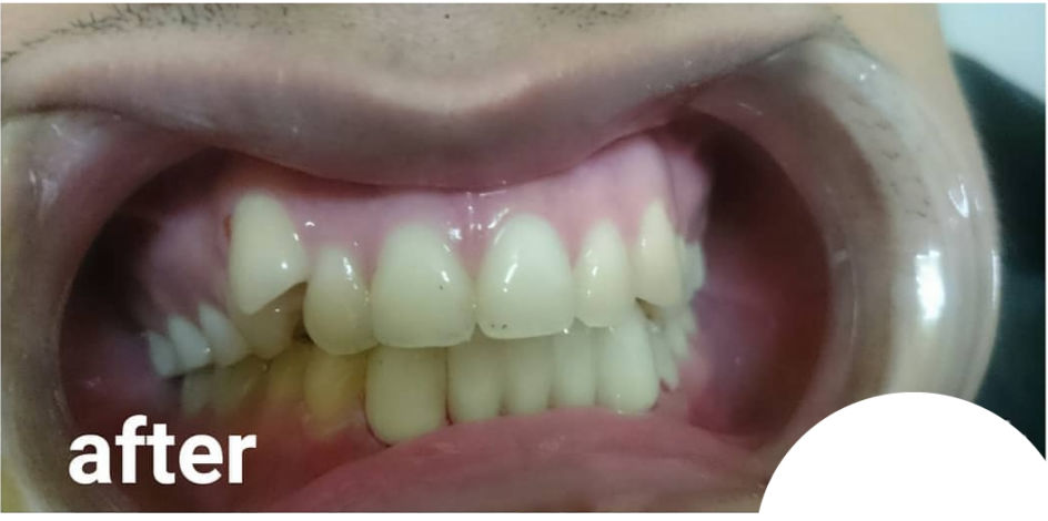 Gigi tiruan atau gigi palsu digunalan untuk menggantikan gigi yang patah atau sudah hilang. Gigi tiruan sebaiknya segera dibuatkan setelah pencabutan. Hal ini penting karena ruang / space yang ada dapat membuat gigi sebelahnya begeser dan membuat sering terselipnya makanan. Pada kasus gigi yang hilang dapat dibuatkan gigi tiruan lepasan seperti gambar di atas. Kekurangan dari gigi tiruan lepasan ini adalah mudah hilang.
